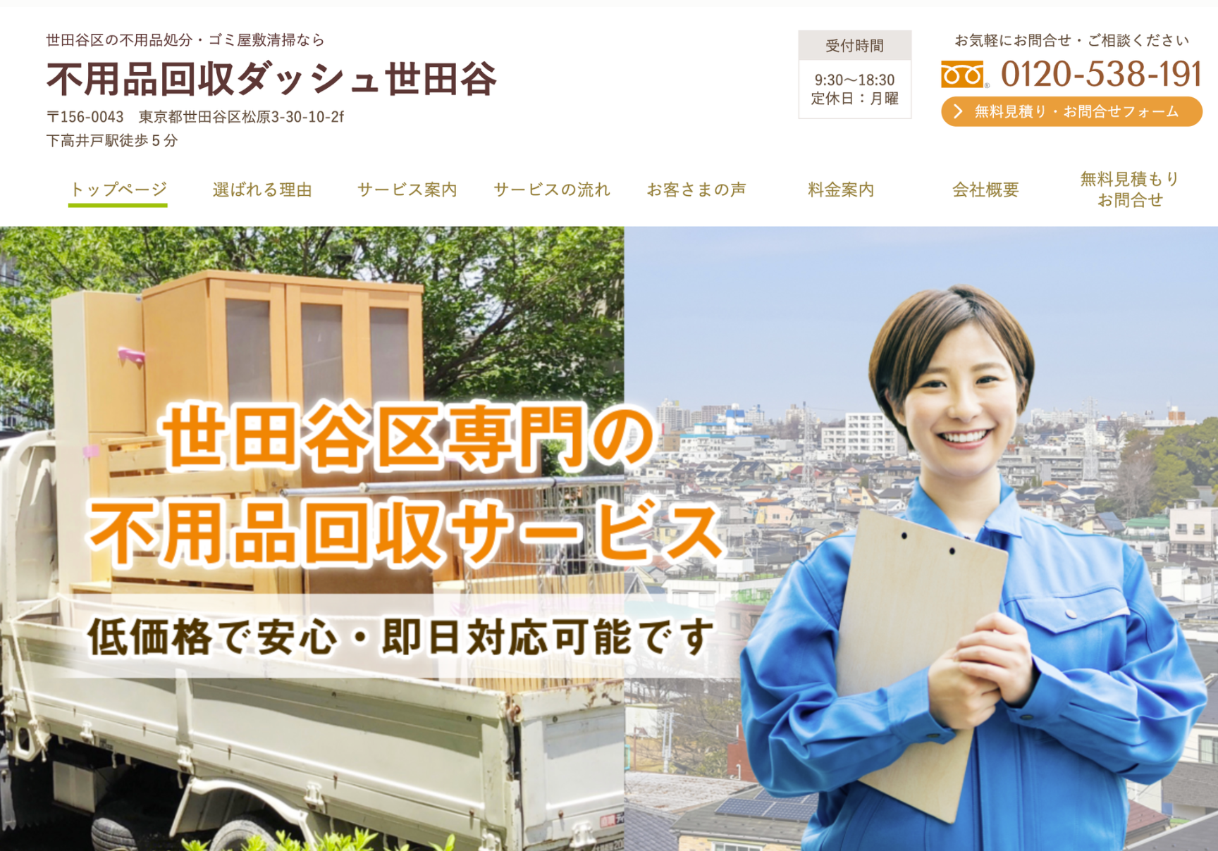不用品回収・粗大ごみ処分、遺品整理・特殊清掃など、生活に関わる幅広い片付けサービスを提供する業者です。